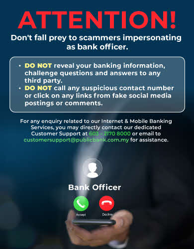 Terms & Conditions | Privacy | Security | Customer Service Charter | Treat Customers Fairly Charter | e-Banking Charter | Bank Negara Malaysia